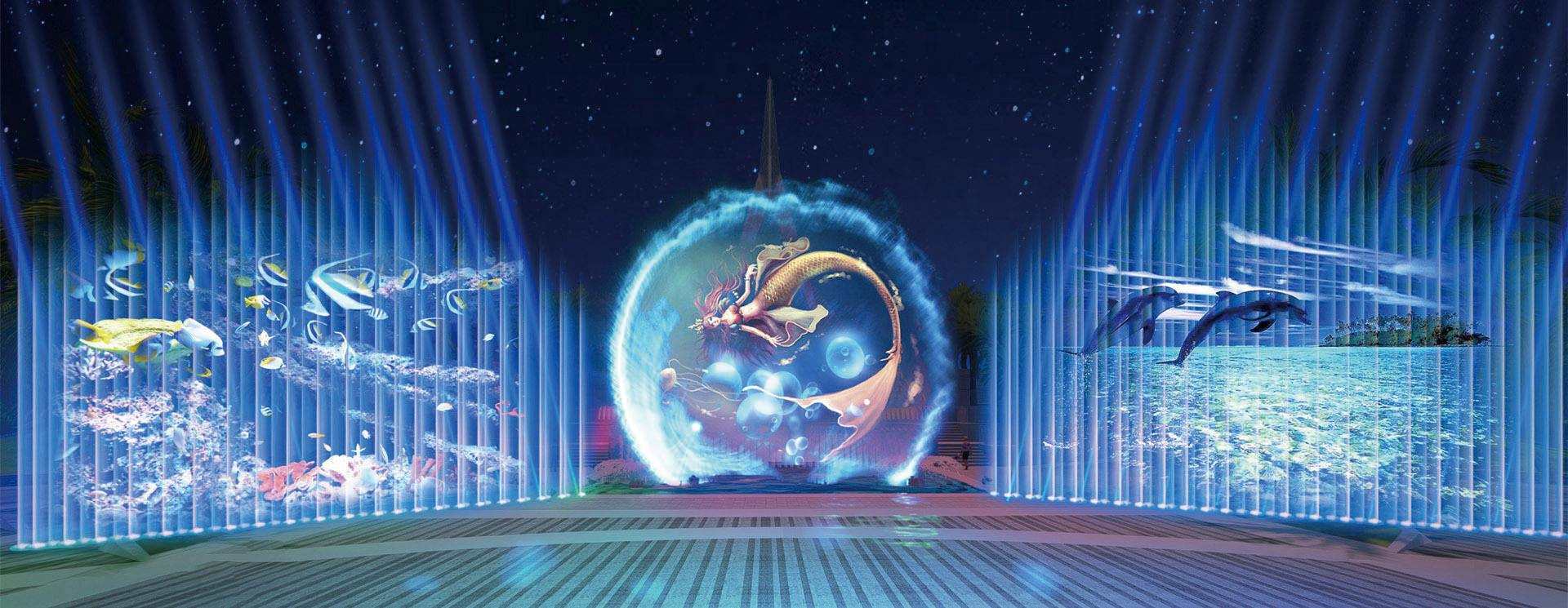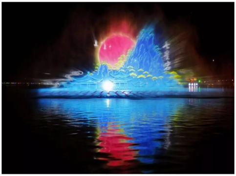 Water curtain holography uses a high-pressure water pump and a special water curtain generator to spray water from bottom to top at high speed, and after atomization, it forms a “screen”. A special projector projects a special video tape onto the “screen” to form a water curtain movie. When the audience is watching the movie, the water curtain blends into the natural night sky. When the characters enter and exit the screen, it seems that the characters are flying into the sky or falling from the sky, creating a sense of emptiness and fantasy, which is fascinating.